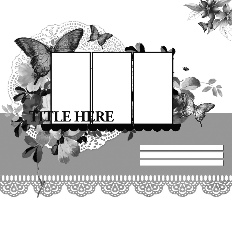 For my third layout, I added yet another doily to create this layout of my daughter on our back deck. There is so much beautiful white lace in this kit and amazing butterflies from http://www.etsy.com/shop/kaylori77 - I adore this sweet lady's Etsy shop! The doily and lavender flowers are from my stash. The large white flowers are from the embellie add-on kit.