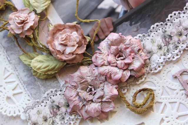 Design Tip: Pair handmade flowers with cut-out ones from the papers to create an economical yet pretty cluster. Here I made some of my sugarplum flowers (see link for tutorial).