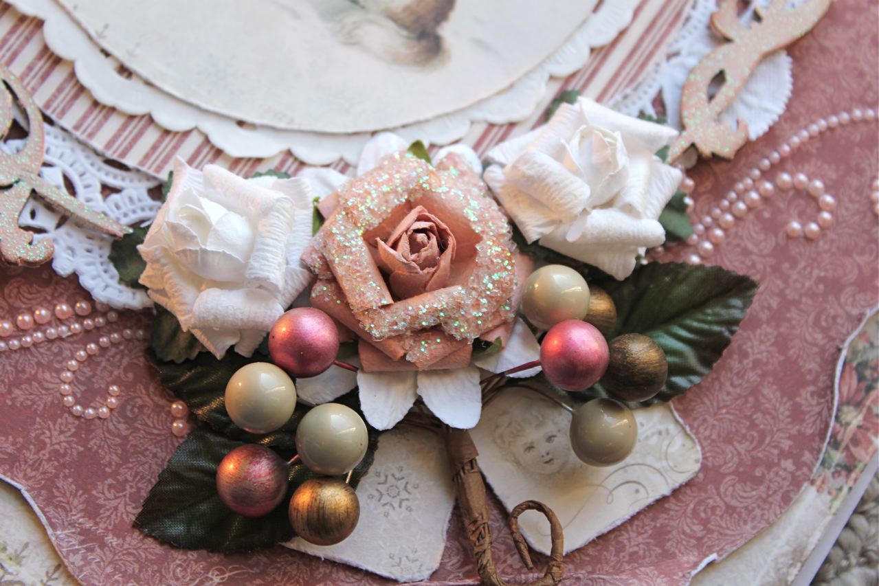 Here I made some flowers using the technique item Glubers and lace and added the Kaiser flowers are centres.