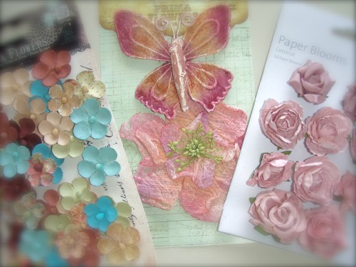 Design Tip: Make a distressed flower using my vintage style flower technique and flower punches/dies instead of circles - I used 3 large and 2 medium.