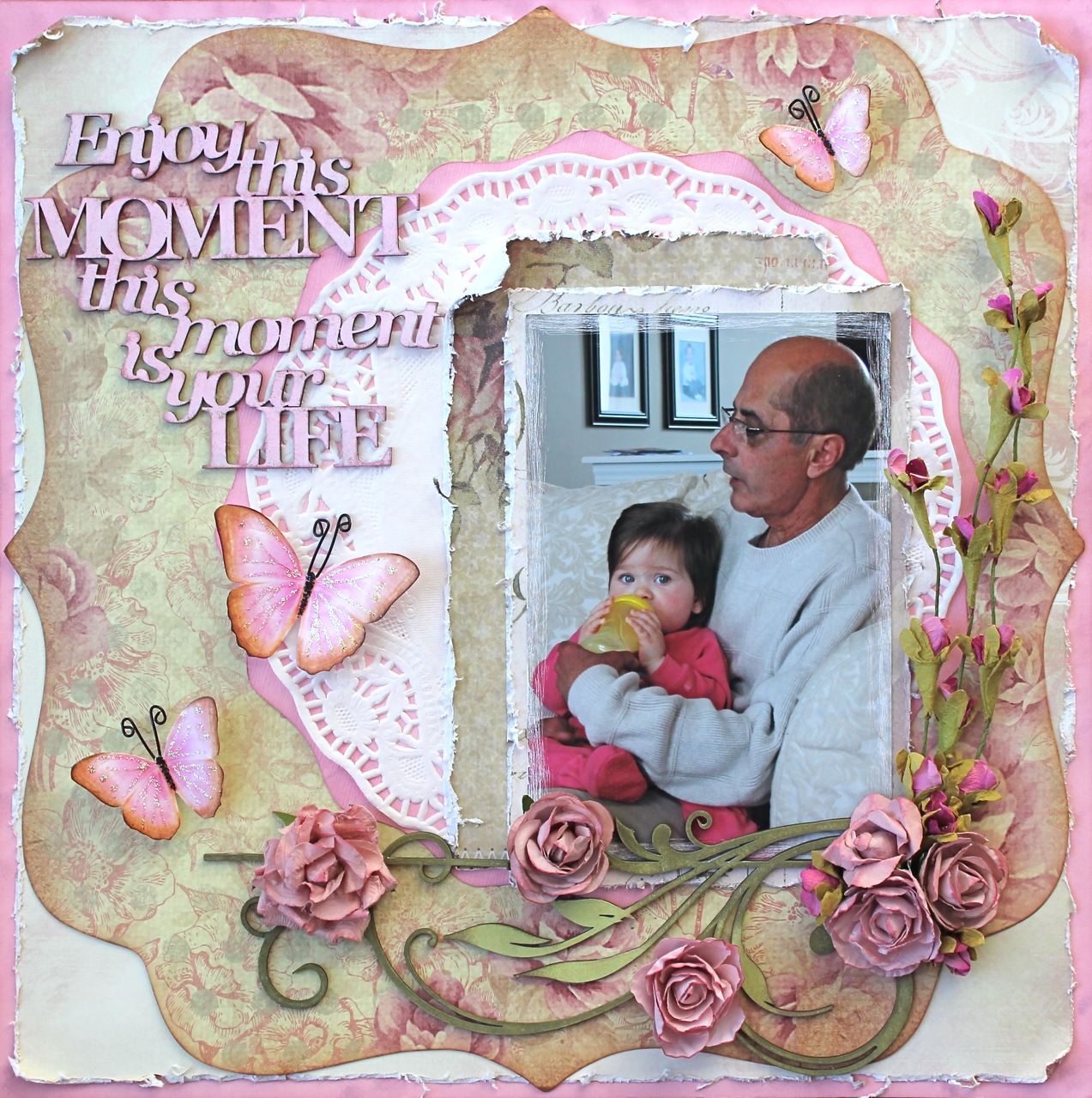 Lastly for today, here is yet another baby picture of my daughter but this time with Grandpa (the one in the previous layout as a kid :) Again, I used 2Crafty chipboard from my stash on this layout... and those butterflies? Those are from fellow Swirlydoos DT member Angelica's Etsy shop.